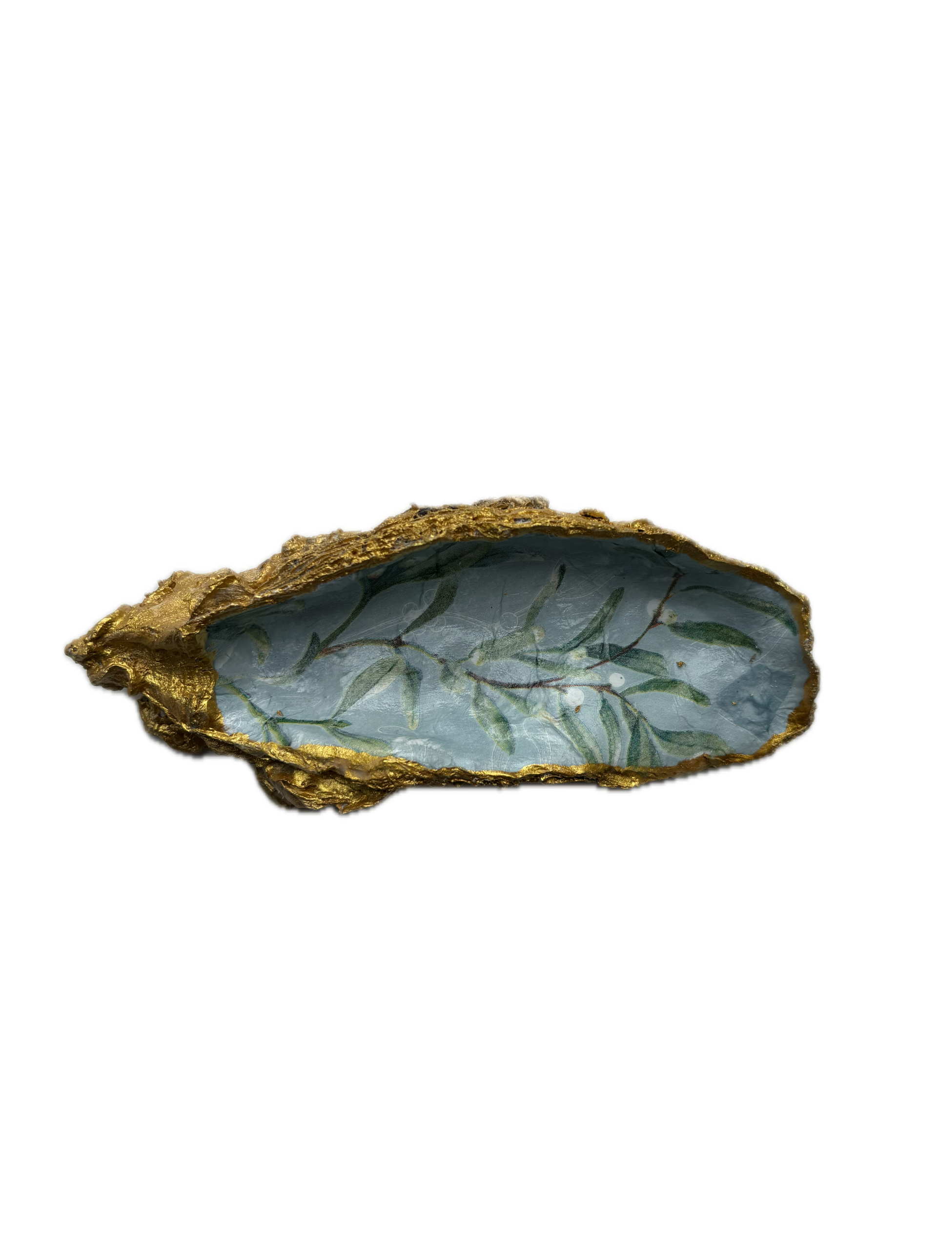 Wij hebben deze oesterschelp gevonden in de Oosterschelde en gedecoreerd met een afbeelding van een maretak of mistletoe in het Engels. De vormen van dit mooie natuurproduct hebben we benadrukt met de kleur goud. Zo creëren we een duurzaam cadeau.