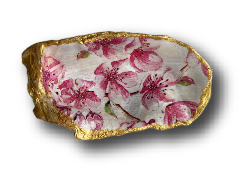Deze grote met de hand gedecoreerde XL oesterschelp heeft een de roze Sakura bloesem als decoratie. De bloemen bloesem van de Sakura trekken vlinders en bijen aan, dus hebben wellicht op jou aantrekkingskracht.