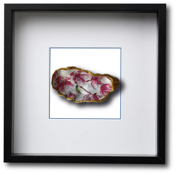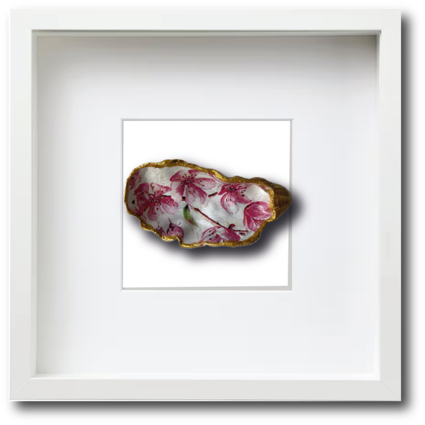 Deze met de hand gedecoreerde oesterschelp heeft een de roze Sakura bloesem als decoratie. De bloemen bloesem van de Sakura trekken vlinders en bijen aan, dus hebben wellicht op jou aantrekkingskracht.