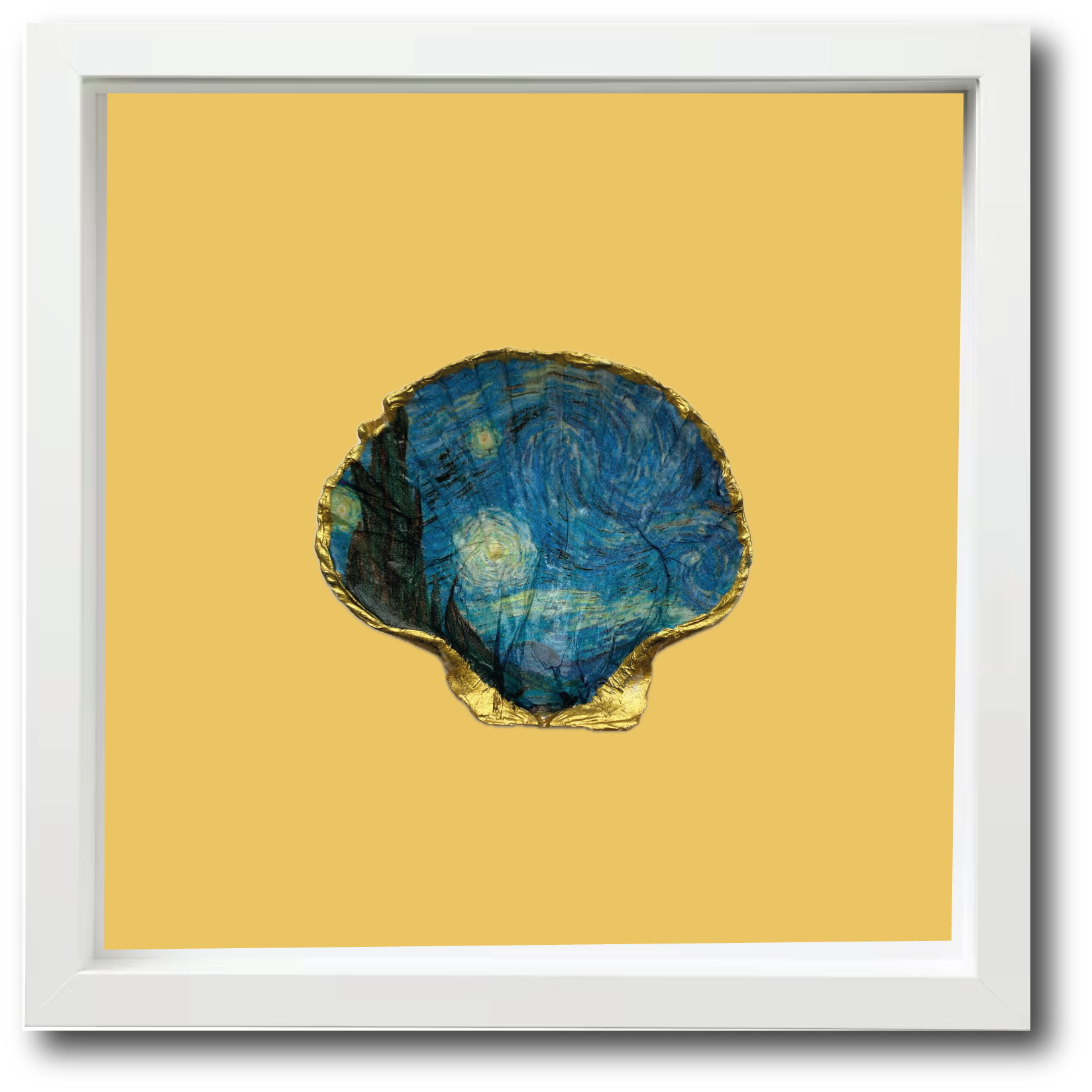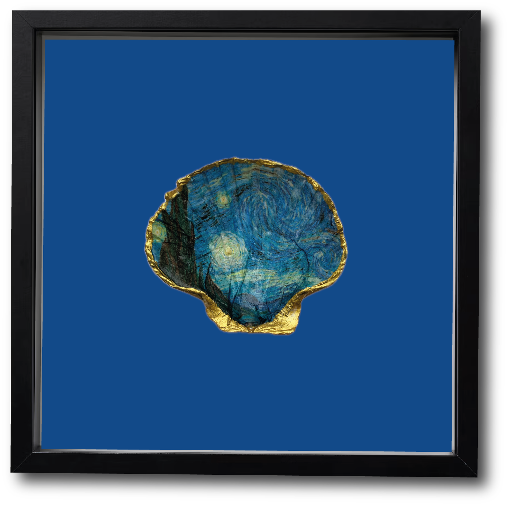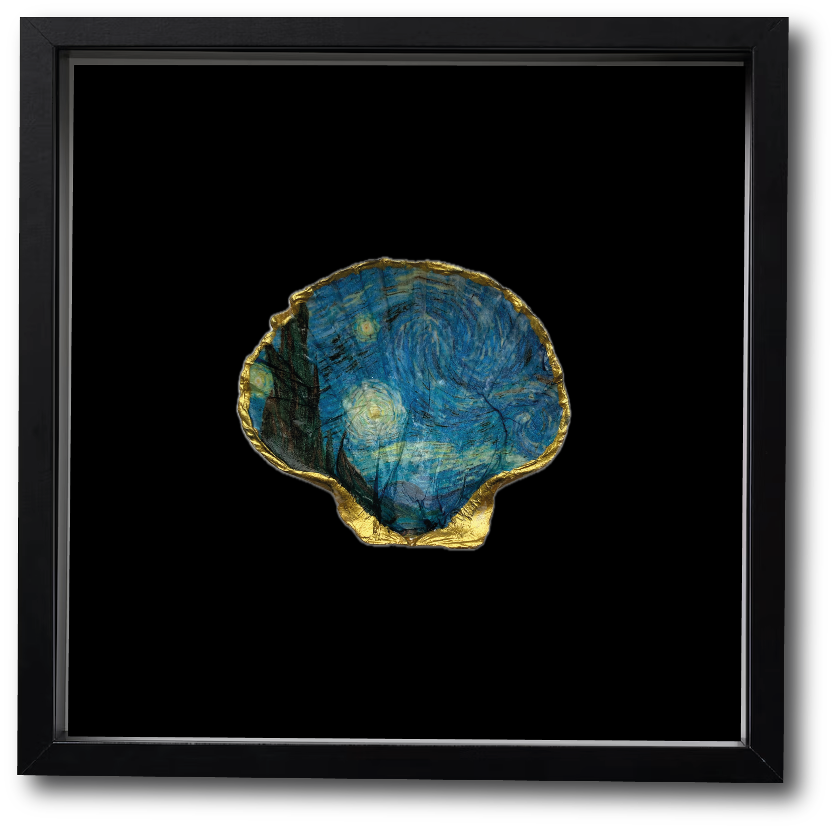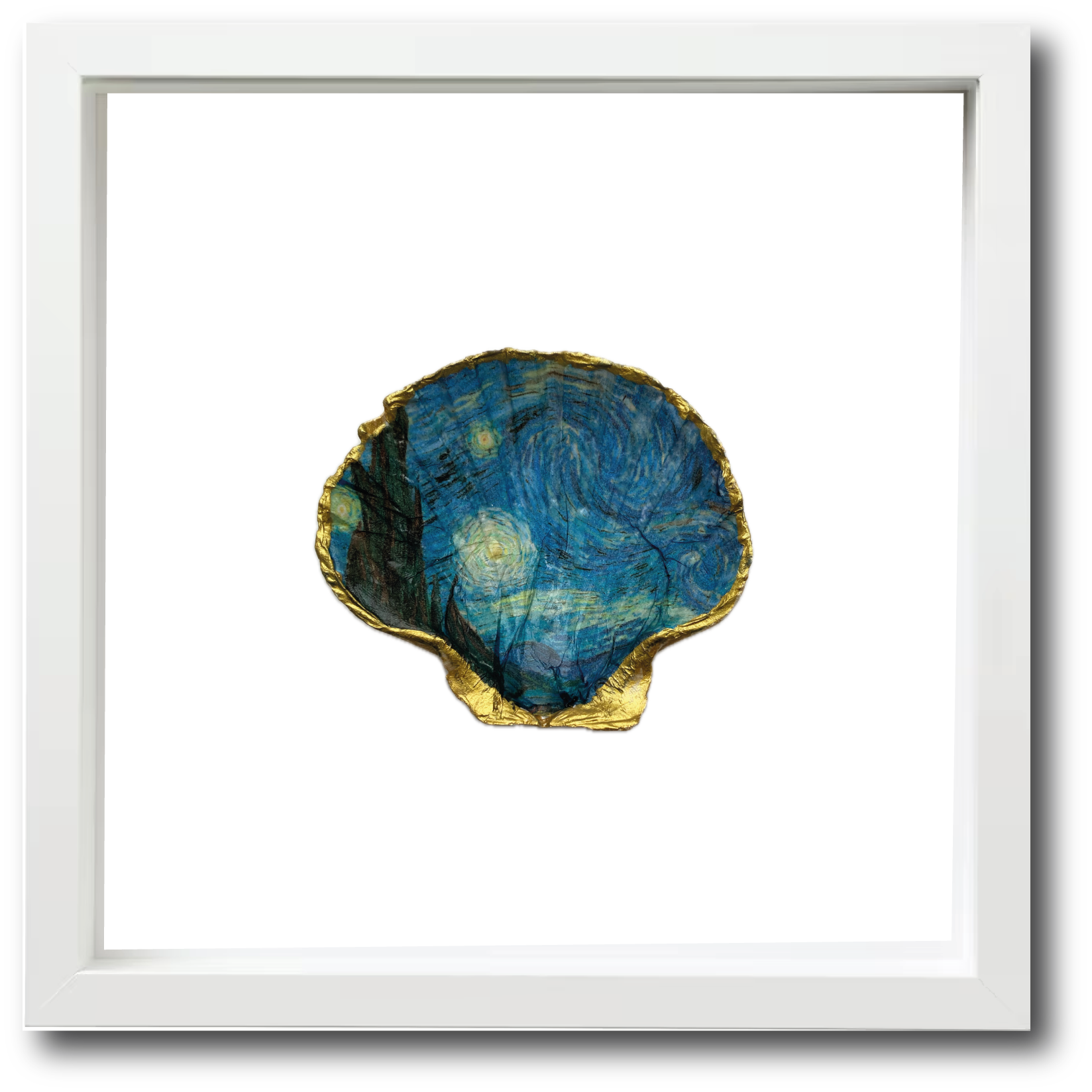Van Goghs golvende lucht vol sterren is één van 's werelds meest beroemde kunstwerken. Te zien in het Van Gogh Museum in Amsterdam. Nu ook op een XL St. Jacobsschelp te koop en te bewonderen in je eigen woonkamer.
