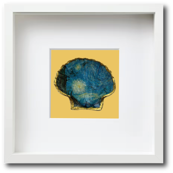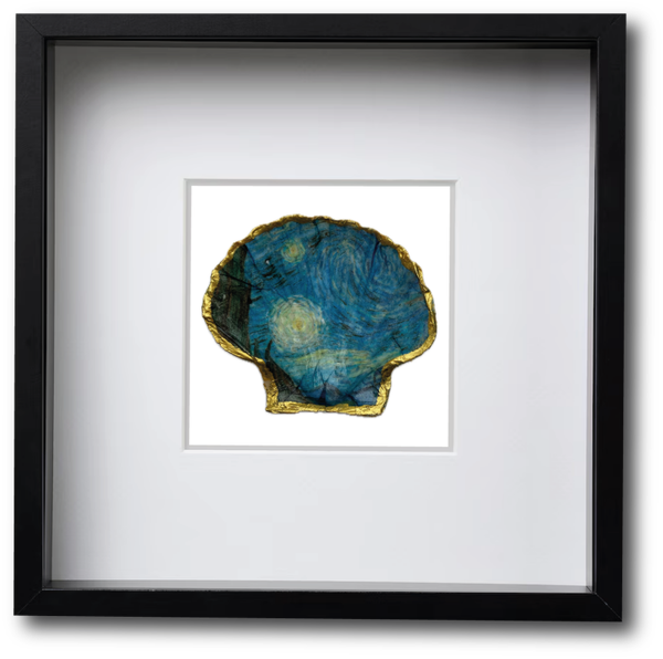 Van Goghs golvende lucht vol sterren is één van 's werelds meest beroemde kunstwerken. Te zien in het Van Gogh Museum in Amsterdam. Nu ook op een XL St. Jacobsschelp te koop en te bewonderen in je eigen woonkamer.
