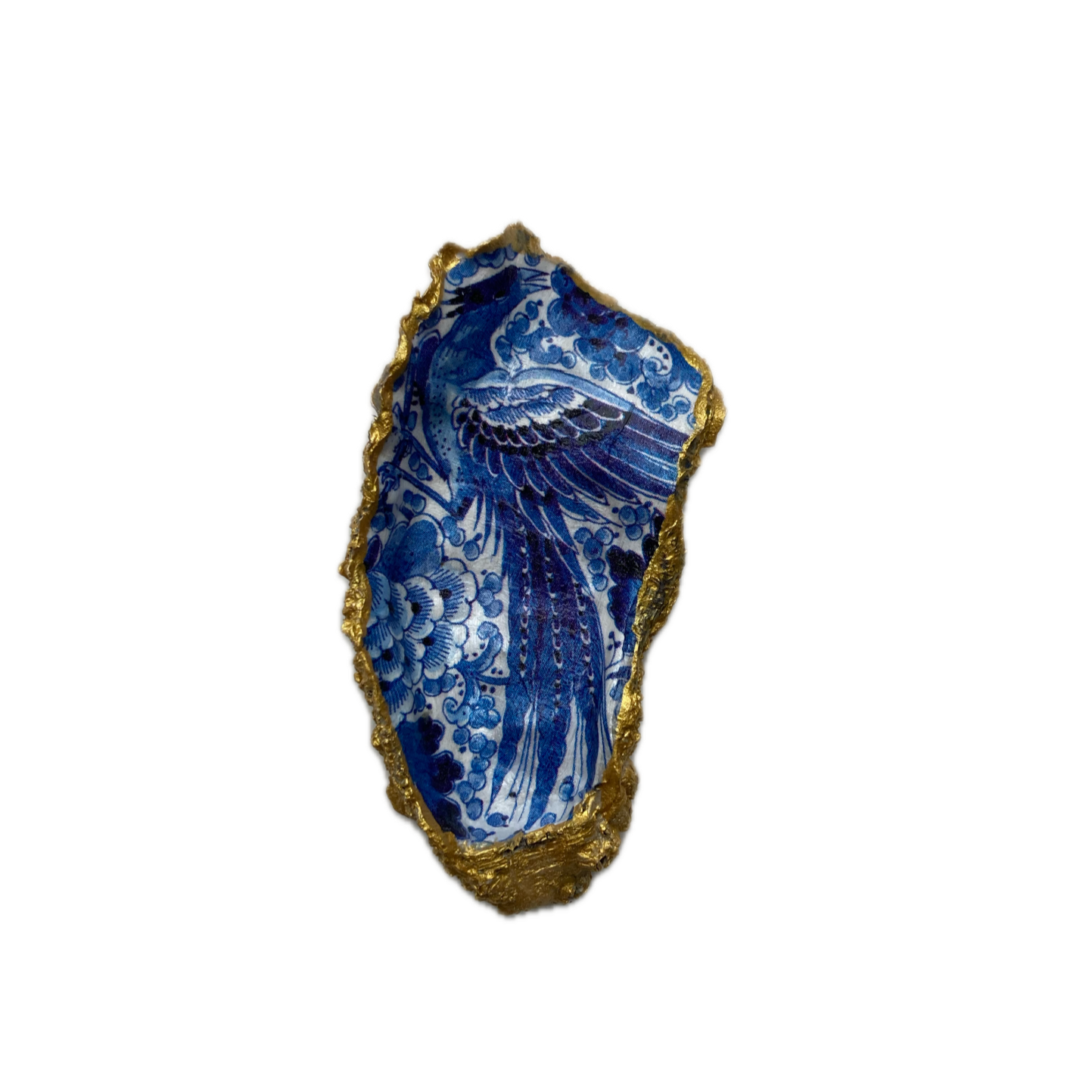 Deze oesterschelp hebben we met de decoupage techniek bekleed met een mooie Delfts blauwe decoratie. Met goudverf hebben we de natuurlijk vormen van de oesterschelp geaccentueerd. Je blijft er naar kijken als je deze oesterschelp in de hand houd. Haal de natuur in huis met deze mooie woningaccessoire.