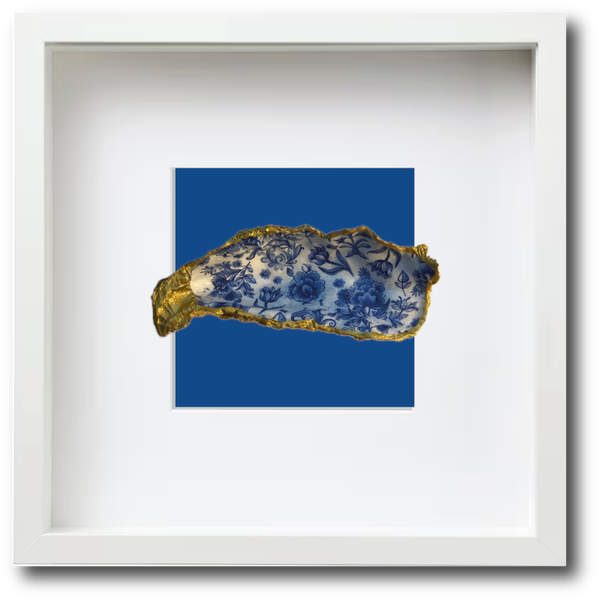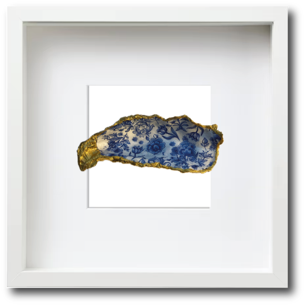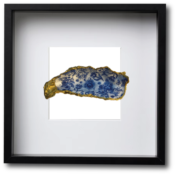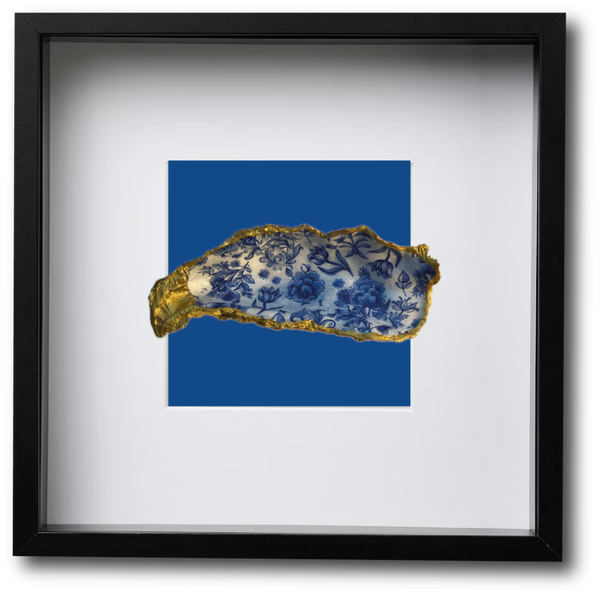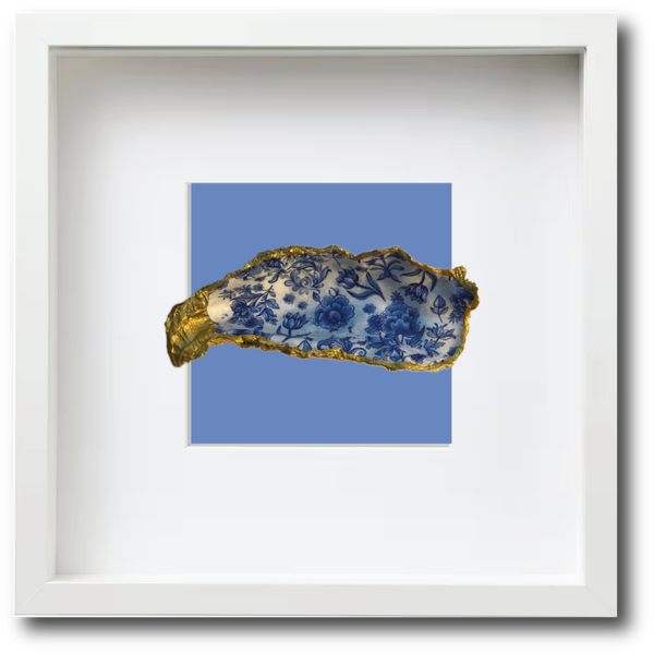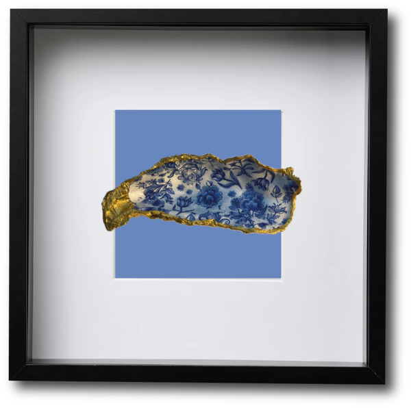 Deze oesterschelp hebben we gedecoreerd met Delftsblauwe bloemen.