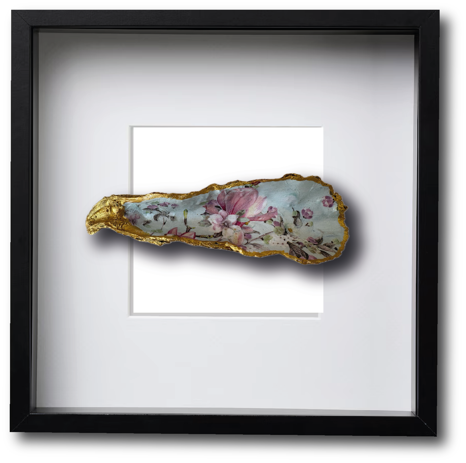 Optioneel met lijst van 27 x 27 x 6 cm. De lijst heeft aan de voorkant een helder transparant plaatje, waardoor de oesterschelp wordt beschermd en mooier uitkomt. De extra diepe lijst is vervaardigd van hout en voorzien van een handige staander en een haakje aan de achterzijde. Hierdoor kun je de lijst eenvoudig horizontaal of verticaal neerzetten of aan de muur hangen.