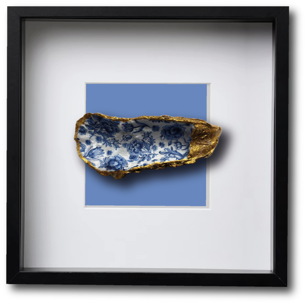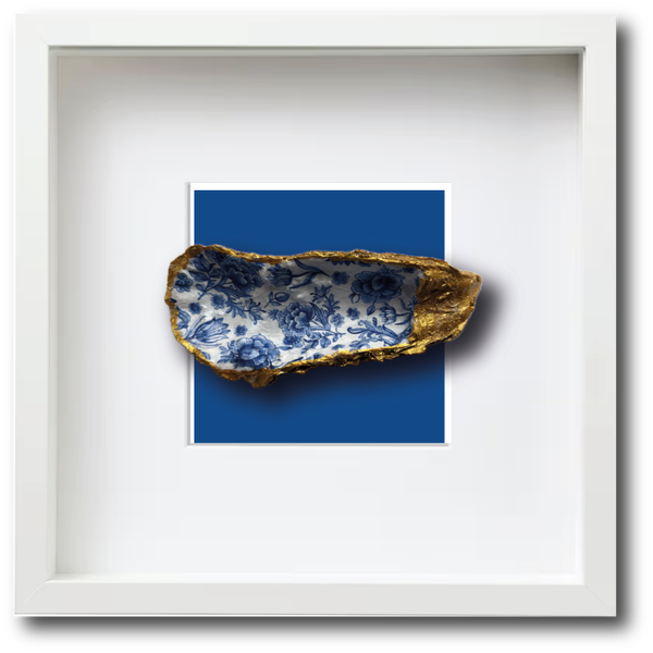 Deze oesterschelp hebben we gedecoreerd met Delftsblauwe bloemen.