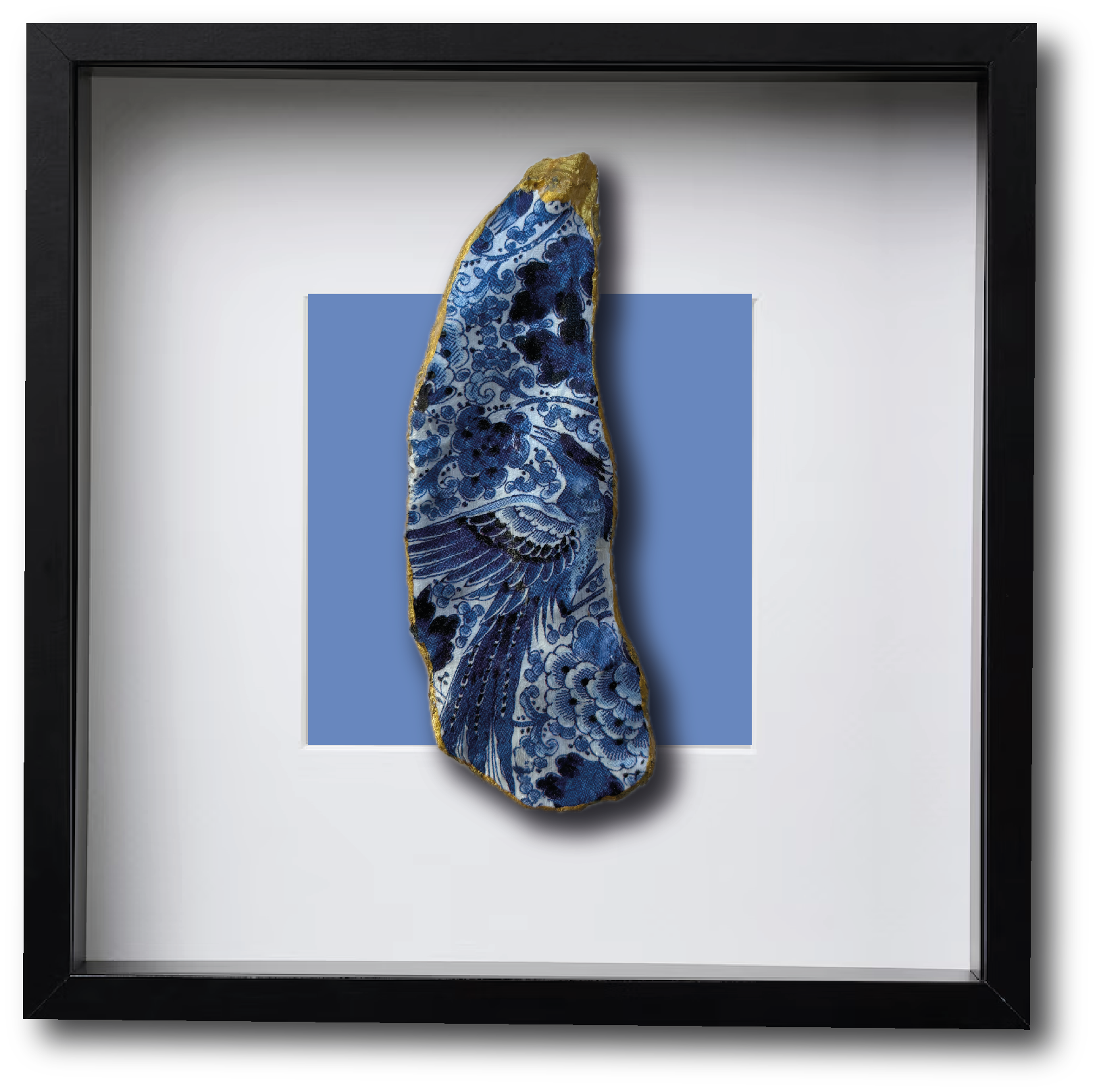 Deze oesterschelp hebben we met de decoupage techniek bekleed met een mooie Delfts blauwe decoratie. Met goudverf hebben we de natuurlijk vormen van de oesterschelp geaccentueerd. Je blijft er naar kijken als je deze oesterschelp in de hand houd. Haal de natuur in huis met deze mooie woningaccessoire.