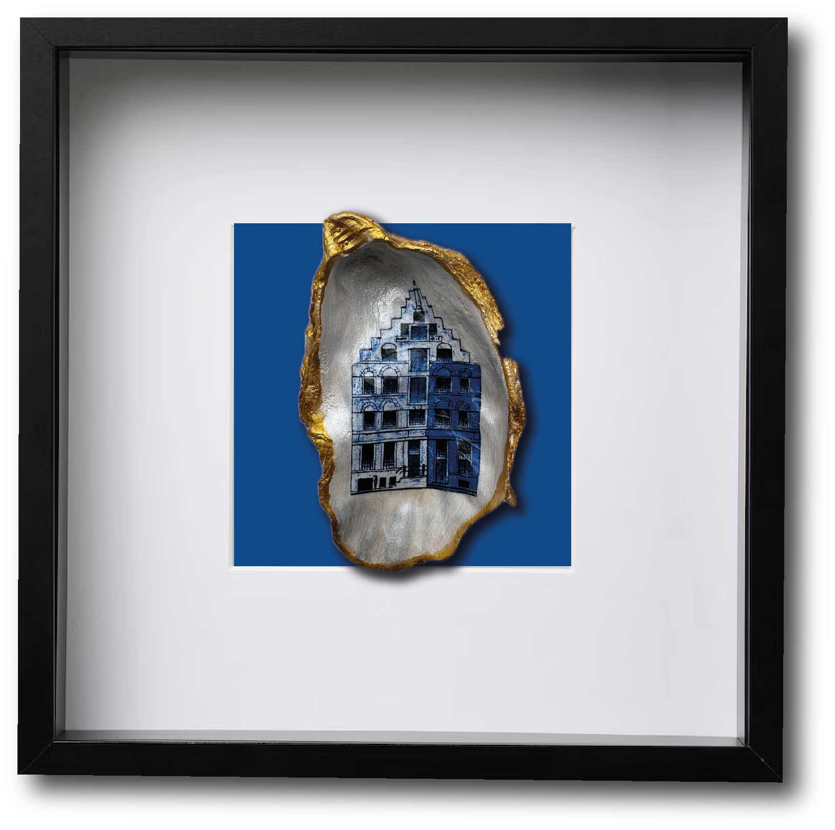 Optioneel met lijst van 27 x 27 x 6 cm. De lijst heeft aan de voorkant een helder transparant plaatje, waardoor de oesterschelp wordt beschermd en mooier uitkomt. De extra diepe lijst is vervaardigd van hout en voorzien van een handige staander en een haakje aan de achterzijde. Hierdoor kun je de lijst eenvoudig horizontaal of verticaal neerzetten of aan de muur hangen.